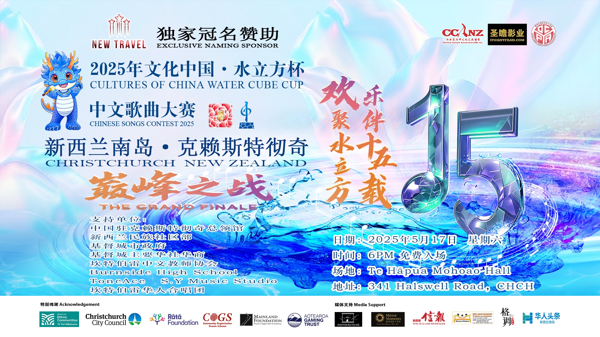 ![]() 北京总决赛获奖名单 少年组铜奖 刘诗涵 新西兰克赖斯特彻奇赛区获奖名单 晋京奖 王力慧 刘诗涵 王渤源 王沐宸 荣耀歌手 罗 臻 黄恩雅 孟涵菲 吴安乔 李溪果 杜 鹰 冯奕嘉 陈乐欣 朱鹏宇 庞天逸 王亚迪 张予林 徐羽馨 最佳造型奖 冯奕嘉 最具潜质奖 杜鹰 Tui Whetter 最佳台风奖 孟涵菲 2024年 ![]() 北京总决赛获奖名单 少年组铜奖 谭路琦 青年组铜奖 王钰瑶 林婷 最炫国风奖 美龄福瑞 新西兰克赖斯特彻奇赛区获奖名单 晋京奖 谭路琦 美玲福瑞 王钰瑶 林婷 十佳歌手 张乐譞 张舒奕 孙千雅 琚珊 才宇航 朱鹏宇 张静雅 王彦敏 张予林 庞天逸 优秀歌手 孙垭涵 张米辰 李姝含 武美希 黄紫 李溪果 李沛耘 付艾珊 王友朝 唐晓桐 徐羽馨 管思琪 张文琰 刘婉君 最具人气奖 武美希 最佳造型奖 张米辰 最具潜质奖 美玲福瑞 最佳台风奖 王钰瑶 2023年 ![]() 北京总决赛获奖名单 青少组银奖 史道文 付子玠 新西兰克赖斯特彻奇赛区获奖名单 晋京奖 华裔青少组:史道文 付子玠 美玲福瑞 华裔成人组:冯海珂 胡文婷 周密 非华裔组:Kelsey Smith(凯尔思) 优秀歌手奖 柳涵钥 恩念 俞乔丹 张予林 才宇航 王渤源 最具人气奖 付子玠 最佳造型奖 胡文婷 最佳台风奖 周密 最具潜质奖 美玲福瑞 2022年 ![]() 北京总决赛获奖名单 成人组金奖 李梦蝶 外国友人组铜奖 Conrad Goddard(康伟) 最佳视频创意奖 陈来 新西兰克赖斯特彻奇赛区获奖名单 晋京奖 华裔青少组:柳 涵钥 Sonya Li-McHenry (恩念) 华裔成人组:李 梦蝶 陈来 非华裔组:Conrad Goddard(康伟) 金奖 华裔青少组:谭 路琦 华裔成人组:胡 文婷 王超 非华裔组:Kelsey Smith(凯尔思) 银奖 华裔青少组:Andrew Levy (林杰生) 华裔成人组:李 政远 林婷 张静雅 非华裔组: Zavier Toaolamai-Holden(陶泽维) 铜奖 华裔成人组:张 天 冯海珂 曹榛一 非华裔组:Elijah Grieve(伊莱杰) 最具潜质奖:画 明 最佳台风奖:胡 文婷 最佳造型奖:张 静雅 谭路琦 2021年 ![]() 入围全球半决赛 郭文超 新西兰克赖斯特彻奇赛区获奖名单 晋京奖 青少组:卫依婷 史道文 成人组:郭文超 许宏英 金奖 青少组:高沛然 成人组:胡文婷 吴梅格 王彦敏 银奖 成人组:李丽颖 朱以忠 铜奖 成人组:蔡笑 张垲松 冯海珂 王友朝 最佳造型奖: 胡文婷 最具潜质奖: 李丽颖 最佳台风奖: 吴梅格 |